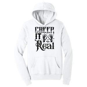 Embrace the creepy vibes with this "Creep It Real" t-shirt. The design features skeleton hands, cobwebs, and gothic text, making it a standout piece for Halloween lovers. Crafted from premium quality 100% cotton, this shirt is as comfortable as it is stylish. Available in unisex long sleeve and hooded sweatshirts, along with youth and ladies' styles.